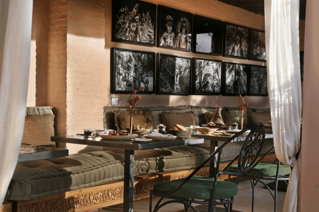 Vi är ett internationellt gäng, från Sverige, Danmark, Storbritannien och Italien som mumsar på vid ett långbord inunder en serie av Sebastião Salgados Amazonasfotografier tillsammans med hotellchefen Karim Irrgang. Jag frågar honom om hur många riader det finns här i Marrakech och hur han i den samlingen skulle klassificera IZZA.