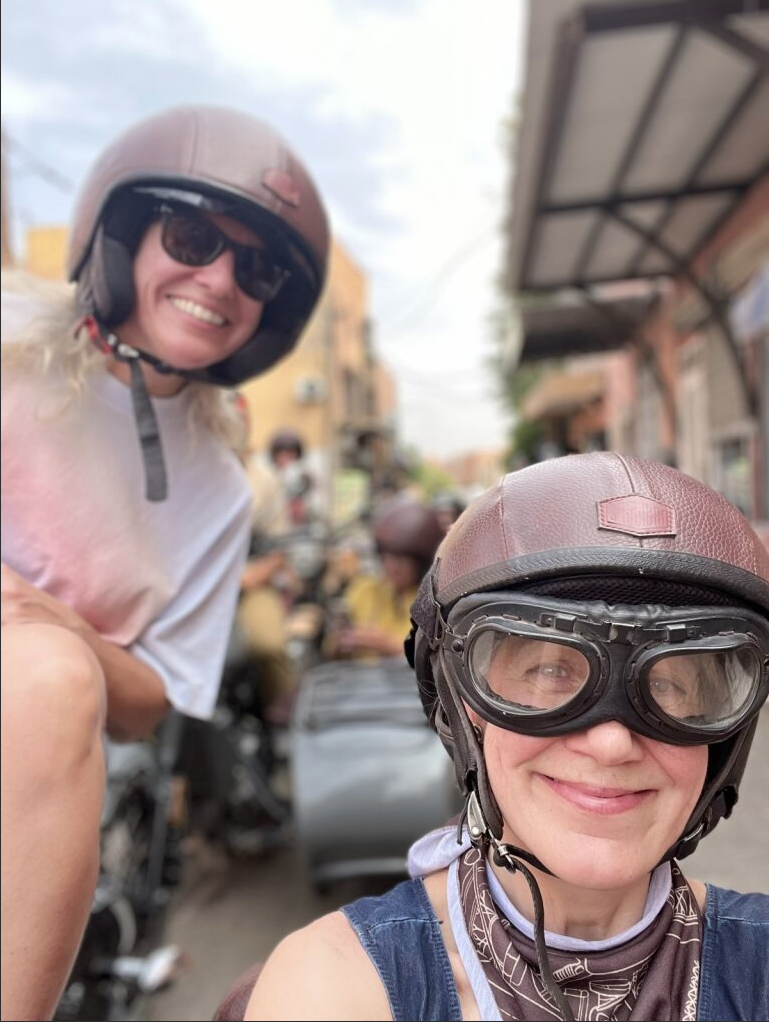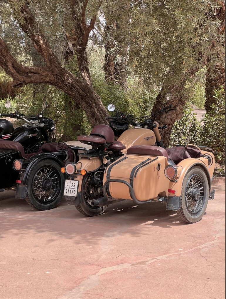 Vår tur, är en så kallad Secret Ride. Vi kommer in i stadsdelen The Palmeraie, ett område där det finns många familjevänliga hotell. Vi fortsätter in genom en grind och stannar under träden framför ett stort hus i Art Deco-stil. Ett hus som binder ihop början och slutet av vårt besök i Marrakech, det var nämligen här som fotografen Leila Alaoui växte upp. Minns du bilderna i receptionen? Huset är i dag tillägnat hennes minne. Hennes karriär fick ett snabbt slut då hon i samband med att hon fotograferade unga kvinnor i Burkina Faso på uppdrag av FN dog i en terrorattack.