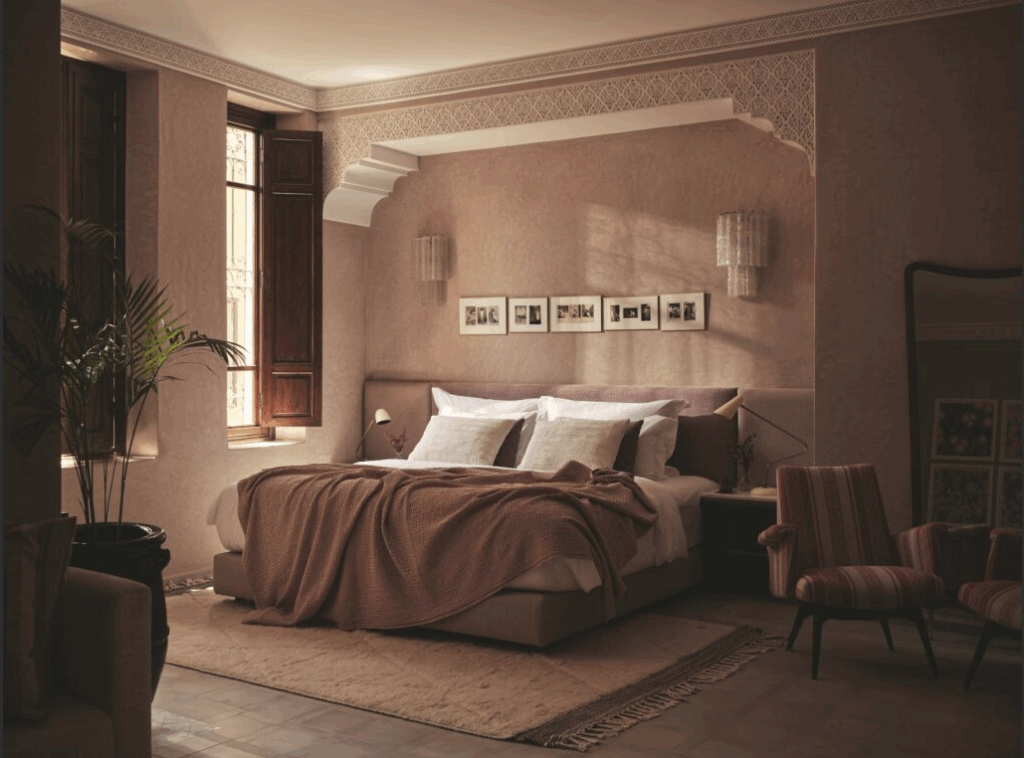 Yves är den största sviten på IZZA, och har som du säkert redan gissat fått sitt namn från Yves Saint Laurent som var nära vän med Bill Willis. De kom båda hit första gången 1966, Bill Willis kom att flytta hit på heltid, Yves kom att framför allt spendera vintrarna här. Tillsammans festade, socialiserade och njöt de av livet här. Bill Willis var även delaktig i att designa Yves och hans partner Pierre Bergés Villa Oasis – som ligger alldeles intill Jardin Majorelle. Trädgården som Yves ägde, och idag är ett av de stora besöksmålen i staden. Färgstarkt, vackert och med trängsel för att få den perfekta bilden, den lysande koboltblå färgen, även kallad Bleu Majorelle, pockar på uppmärksamhet. För egen del köpte Bill Willis Dar Noujoum – ett tidigare palats som kom att bli ett av hans hem här. Idag ägs huset av IZZA:s ägare och en hel del föremål och skisser har hämtats hit.
