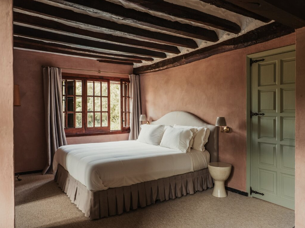 Jag sätter nyckeln i låset och kliver in. Rum nummer 1 är en svit, med utsikt både över poolen och över bergen och åkern, där Off. Grids egen odling så sakteligen växer fram. Jag noterar att det inte finns någon tv i rummet – ett medvetet val av Gerard Greene när han skapade konceptet. Som välkänd hotellentreprenör bland annat som medgrundare till Yotel, en hotellkedja med fokus på effektivitet, teknologi och urban design – tänk flygplanskabiner och premiumkomfort där självincheckning är en självklarhet. Läget – där det händer, i storstäder och vid flygplatser. Under pandemin flyttade han in i en husbåt och började fundera. Visionen att skapa något mindre, långsammare och mer personligt – en plats för avkoppling – växte fram.