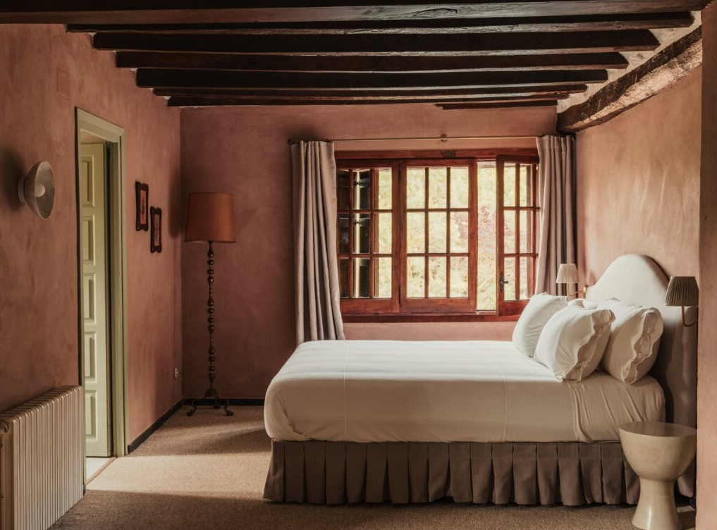 Beth öppnar även dörrarna till några av rummen. Alla helt olika, men med det gemensamma att mycket av den tidigare inredningen har tagits tillvara och uppgraderats. Tillsammans har designern Ariadna Puigdomenech och Gerard Greene väckt nytt liv i den gamla masían. Kalkputsen är påstruken och mjuka terrakottanyanser har målats på väggarna – det gamla möter det nya.