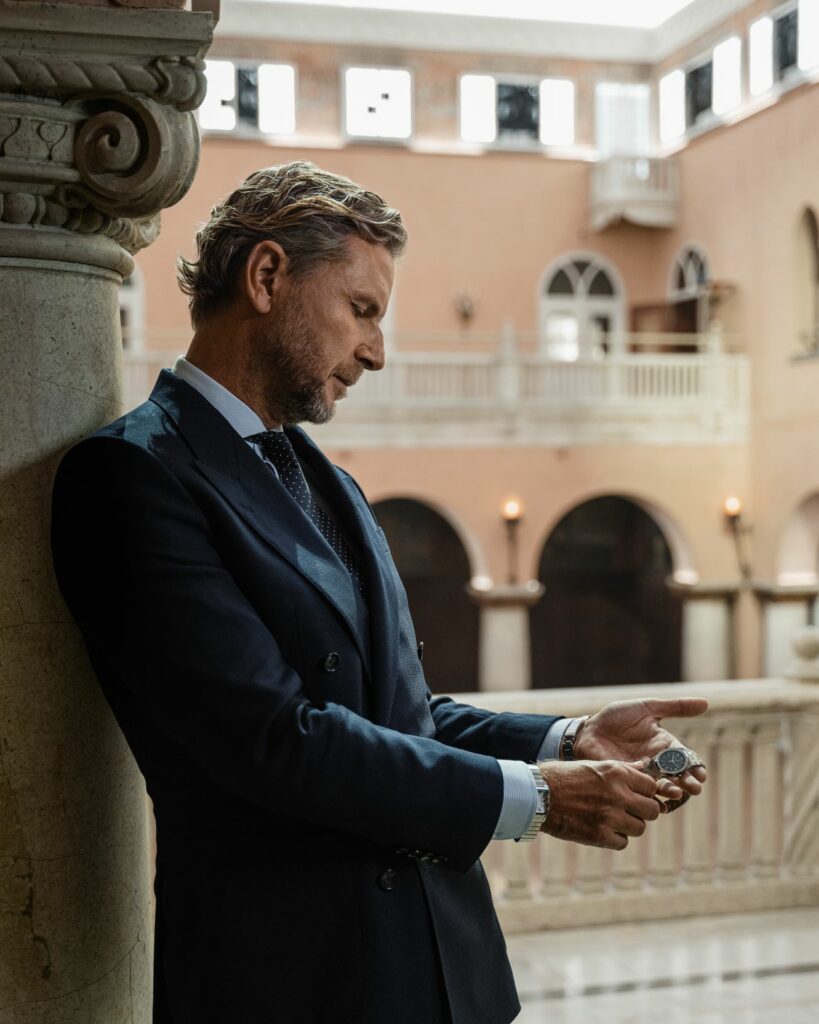 ATT BOKA EN tid för intervju med Olof Larsson är inte helt enkelt. Han har alltid något på gång eller är på väg någonstans. När vi äntligen träffas har han hunnit med två resor till Champagne och en födelsedagsfrukost med familjen. Klockan är strax efter tre när vi ses i Cadierbaren på Grand Hôtel i Stockholm. Klockor är hans passion. I rollen som klockentreprenör har Olof Larsson och Nymans Ur 1851 blivit något av en institution, men en institution i ständig rörelse.