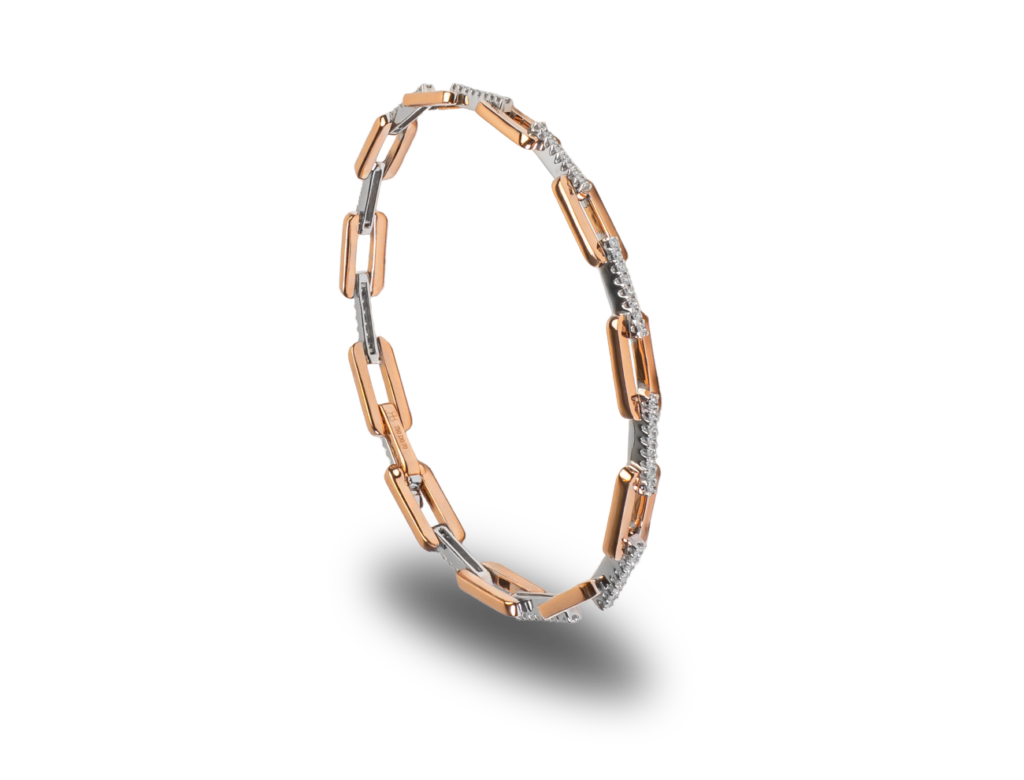 PAX STRECH FULL Elastiskt diamantarmband i 18K roséguld med nitar och 236 briljantslipade diamanter, fattade omlott i rader om två och tre. Total carat diamanter: 7,70 ct. Pris 295 000 kr.