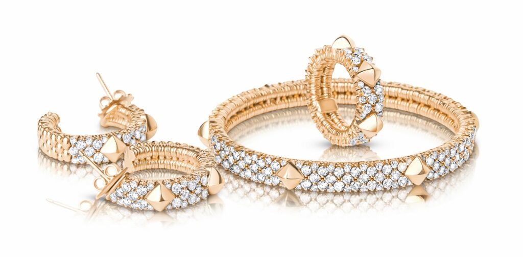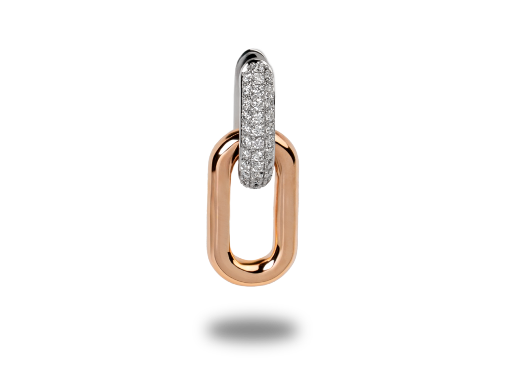PAX STRETCH EARRINGS Loop-örhängen i 18K roséguld, fattade med 80 briljantslipade diamanter och med fyra guldnitar. Total carat diamanter: 2,55 ct. Pris 148 000 kr.
