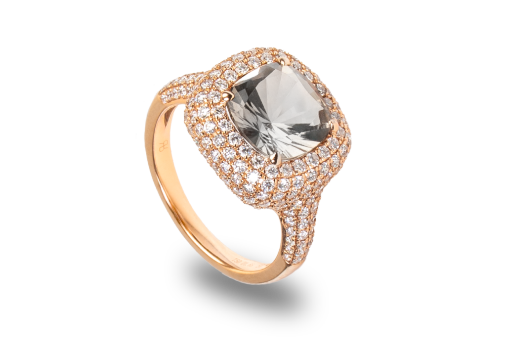 Ring i 18K guld med ljus rökkvartssten och 204 briljantslipade diamanter. Total carat diamanter: 1,65 ct. Pris 98 500 kr